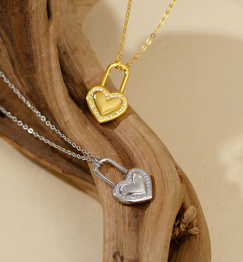 This necklace features a sleek heart-shaped lock pendant that hangs gracefully from a delicate chain, adding a hint of modern charm. The smooth contours and subtle sparkle make it a standout piece that effortlessly elevates everyday style.