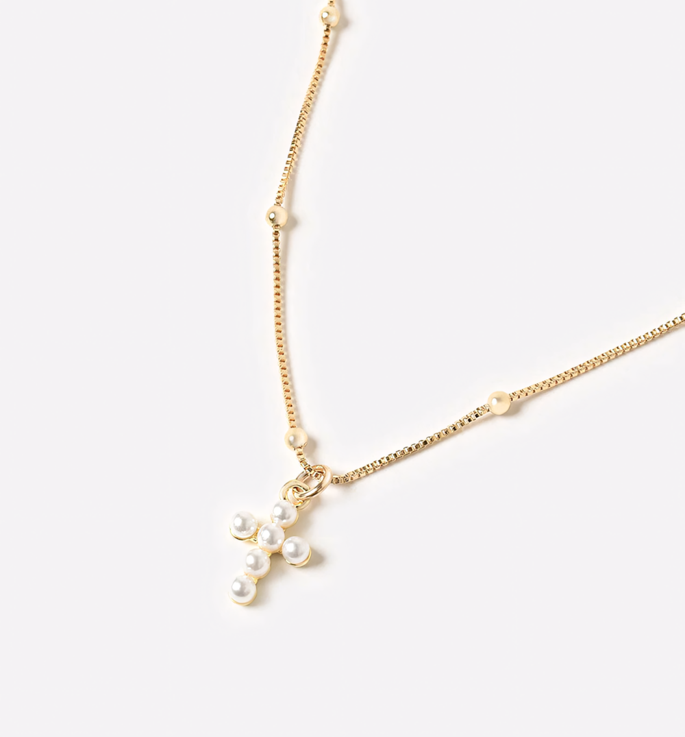 This necklace features a refined cross charm with smooth lines and a modern touch. The subtle gleam and simple structure give it a graceful presence, adding quiet sophistication to any outfit.