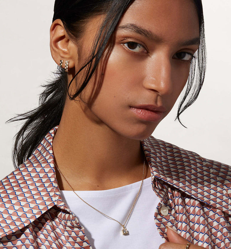 A striking balance of shapes — this necklace features a square and round charm that play off each other with effortless harmony. The sleek contrast and gentle sparkle make it a refined accent that draws attention with quiet confidence.