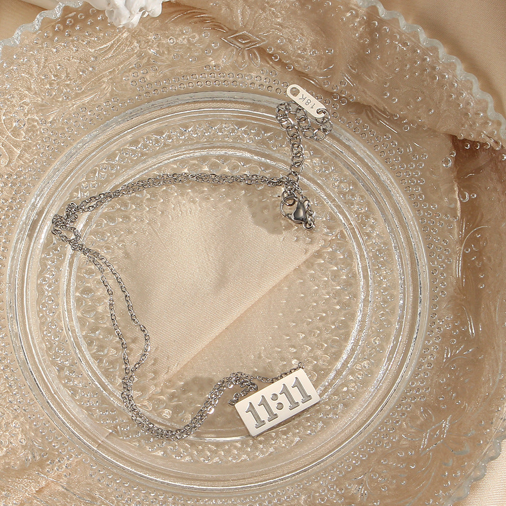 A sleek bar pendant engraved with “11:11,” symbolizing moments of alignment and good energy. Its minimal design adds a subtle touch of meaning to any look—simple, stylish, and full of intention.