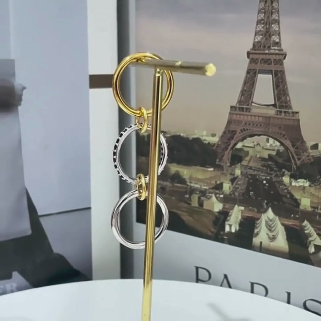 This three-ring design wraps elegantly around the finger, creating a sense of depth and movement. Subtle sparkle highlights each band, making it a striking accent that elevates any outfit.