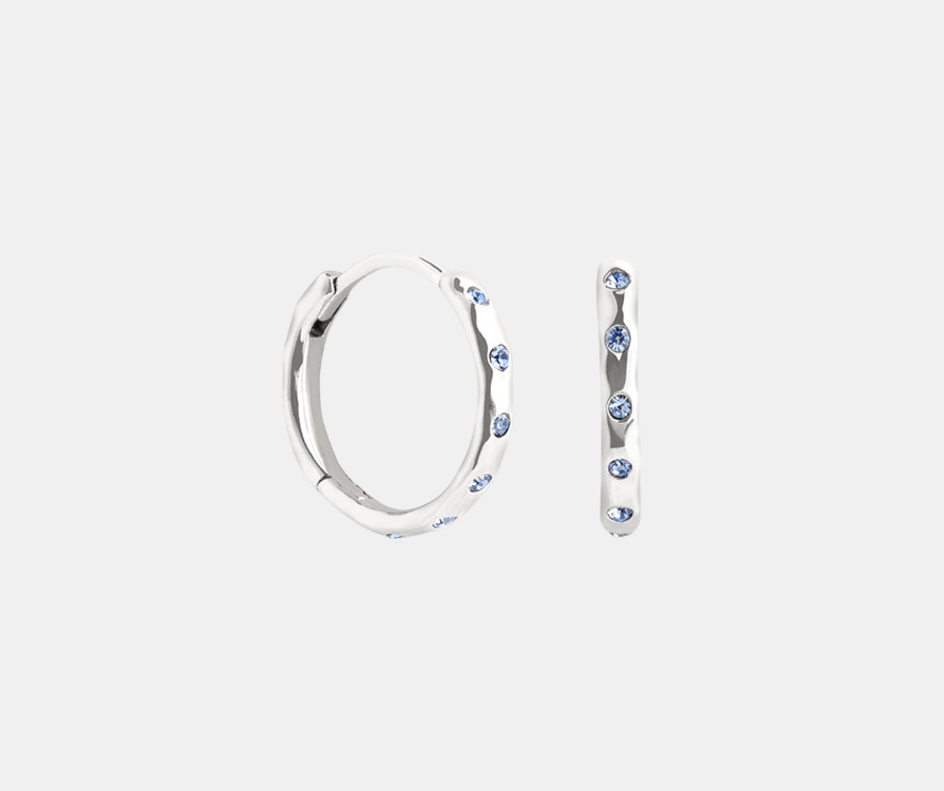 A compact hoop with an irregular, liquid-like surface that gives it a sculpted, organic look. Its smooth curves and molten texture create a subtle shimmer perfect for everyday wear.